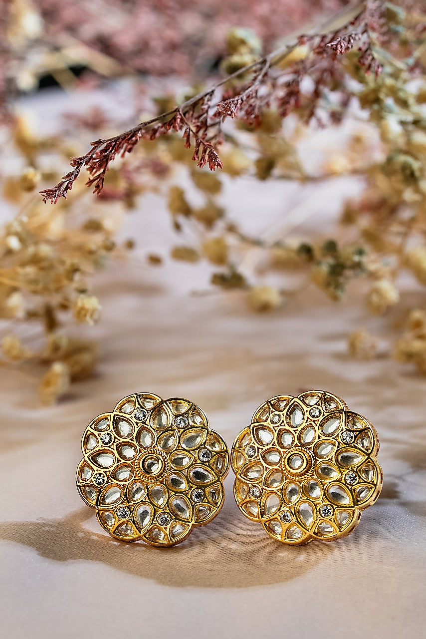 Signity glow White Small Kundan and Moozanite Flower Earrings