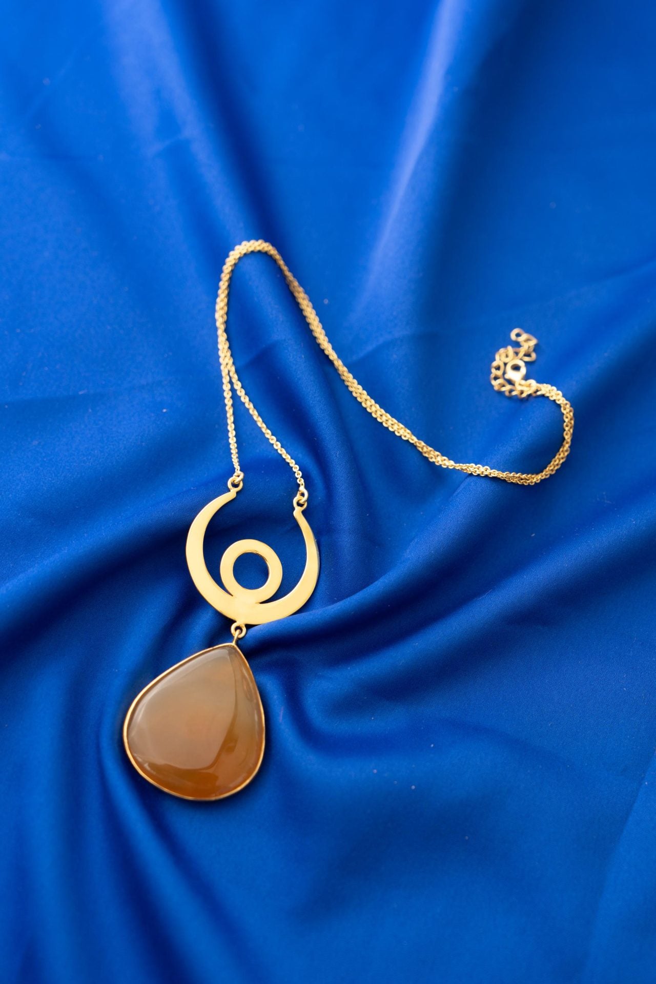 Materials Used: A Red Onyx pendant with a horseshoe design (luck symbol). Stung on a gold-plated gold chain.