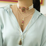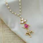 Dainty neckpiece with pearls, silver, kundan, and kemp stones