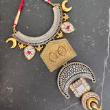 Inspired by traditional designs, this necklace is crafted with temple motifs, red colored Celestial elements fused with heritage artistry Finished forming on a tarnish-free copper base