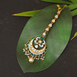 Small Mang tikka- Center pearl, Kundan studded green and white stones