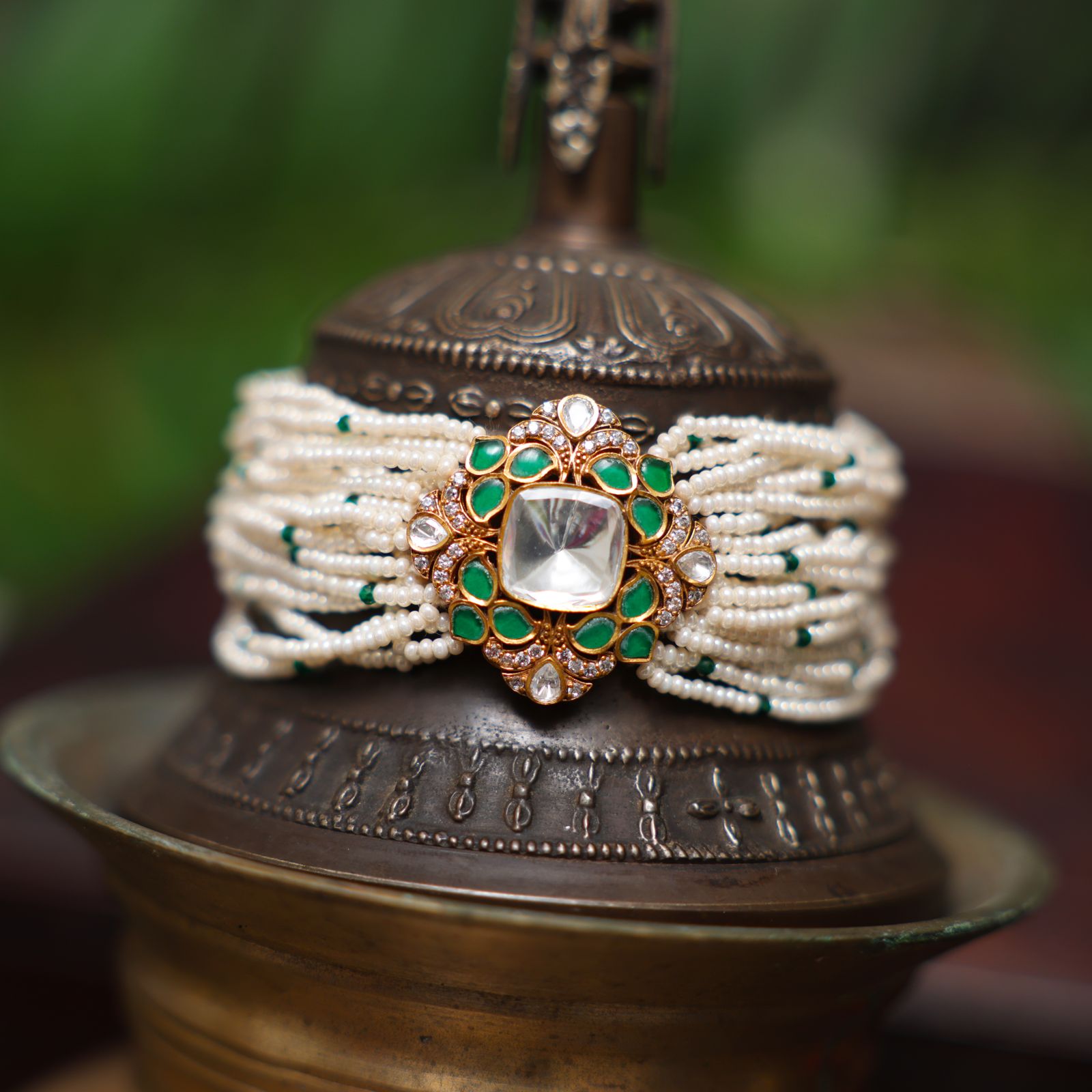 Statement Kundan Heritage Bracelet with White Cultured Pearls