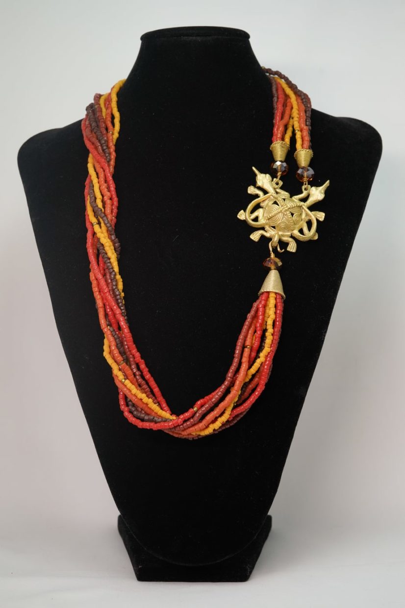 Turtle pendant with warm orange ceramic and corals beads (African Collection)